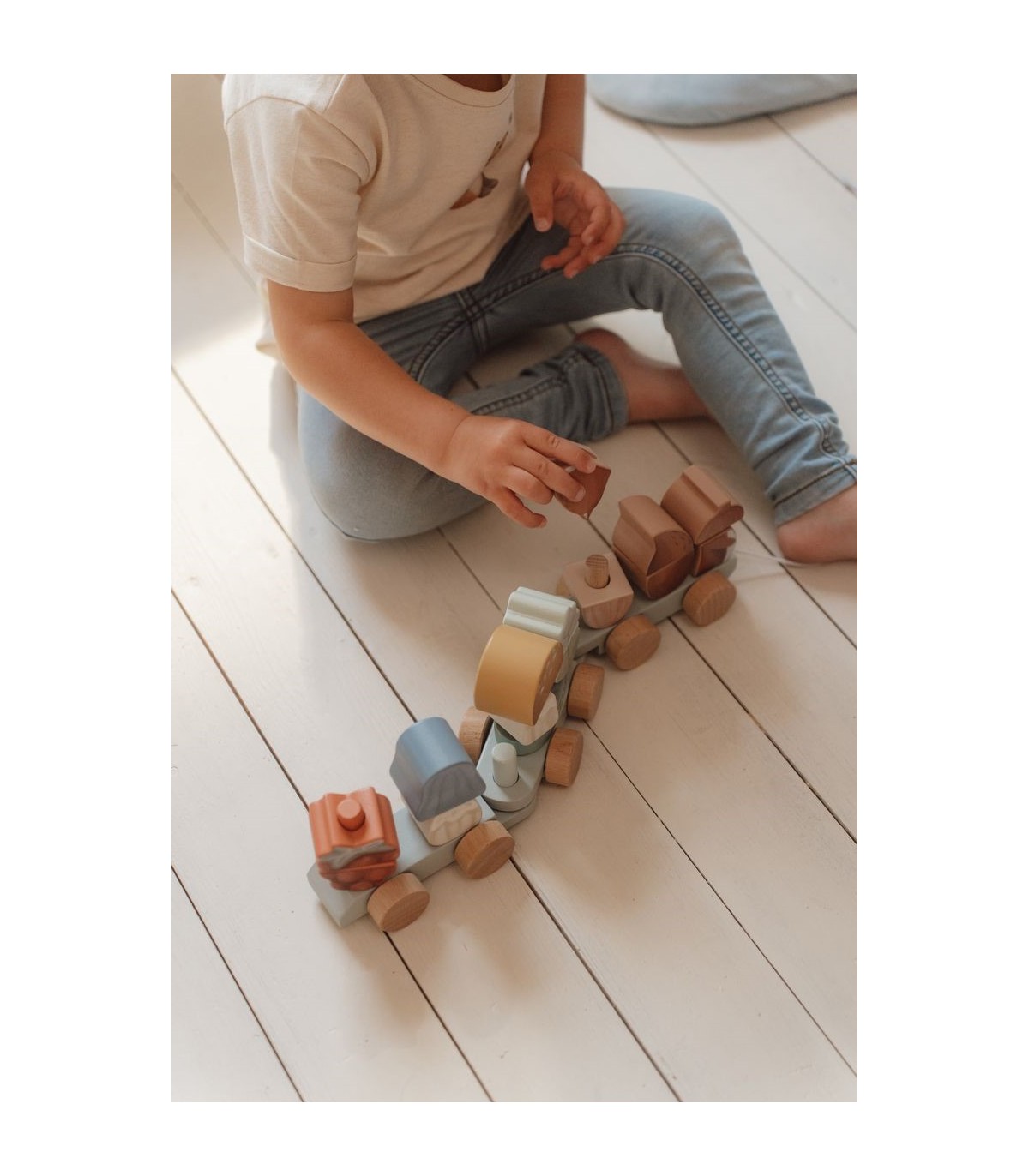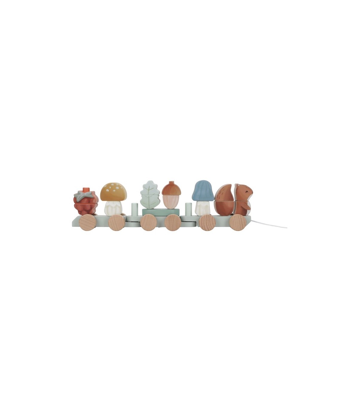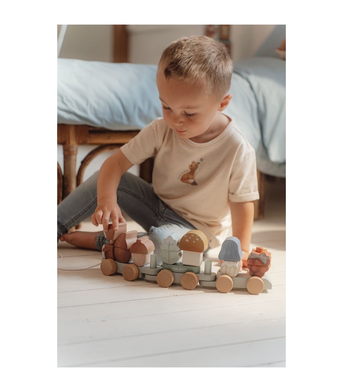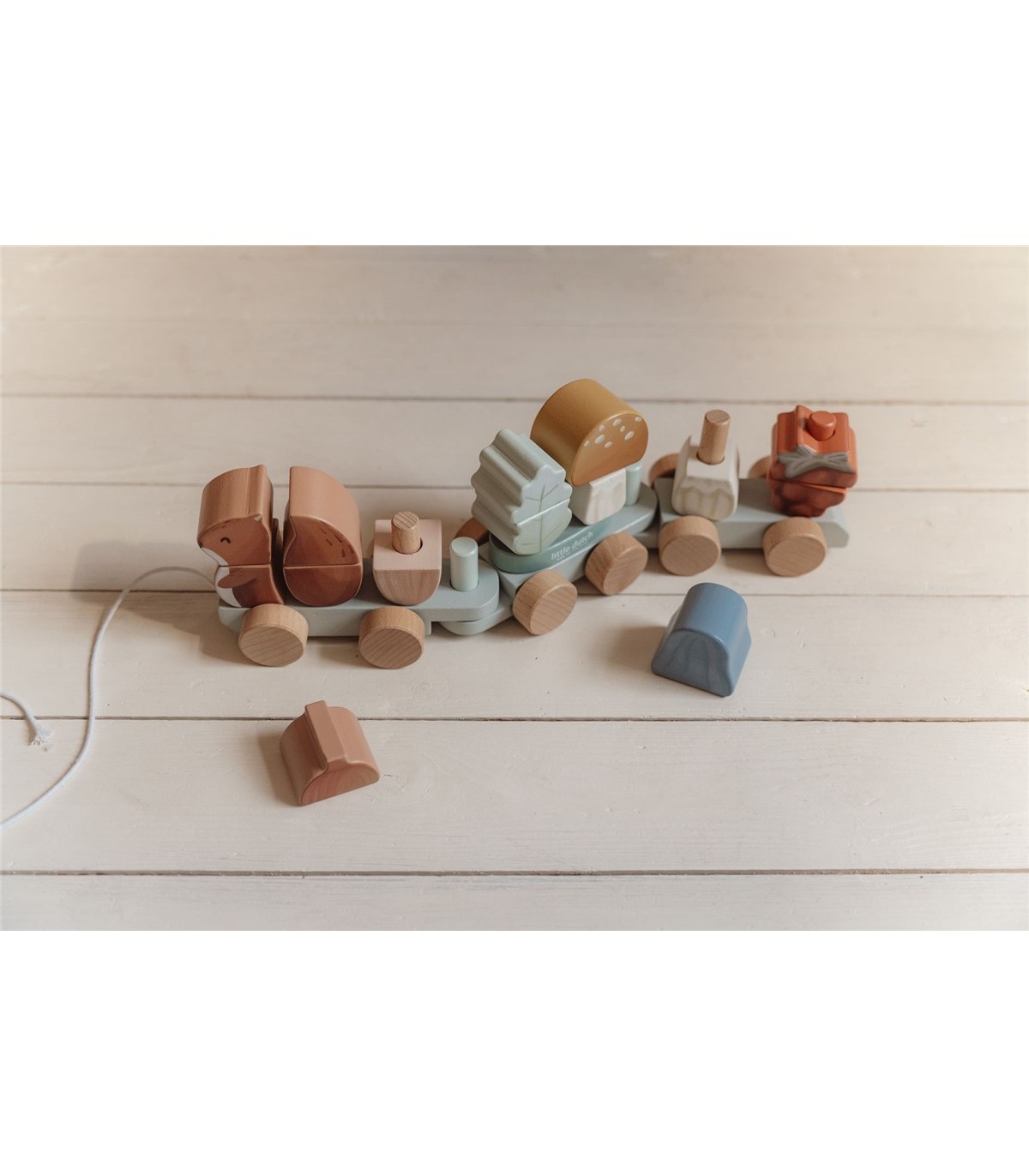 ¡Chú, chú! Reúne a todos los adorables animales, setas y tesoros del bosque y súbete a bordo para emprender un viaje mágico con Forest Friends. Apila todos los bloques uno por uno en los tres vagones de este tren de madera apilable. La ardilla tomará la delantera y se sentará en la parte delantera. ¿Qué hongo seguirá y adónde irá la piña? Cada bloque se convierte en una pieza de la historia de tu imaginación. Una forma divertida de jugar y desarrollar la coordinación mano-ojo al mismo tiempo. El tren incluye 18 piezas y mide aproximadamente 45 cm de largo.