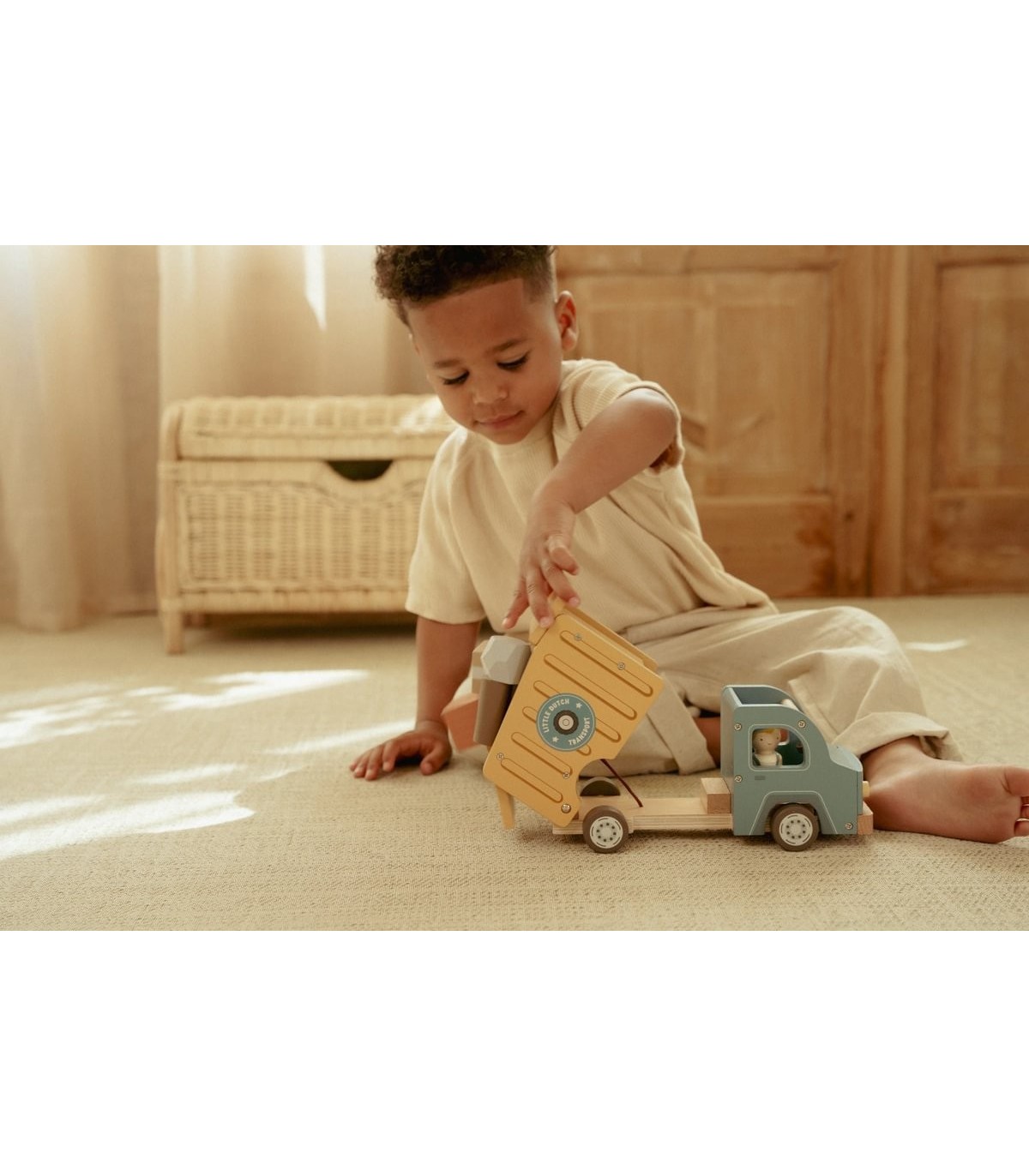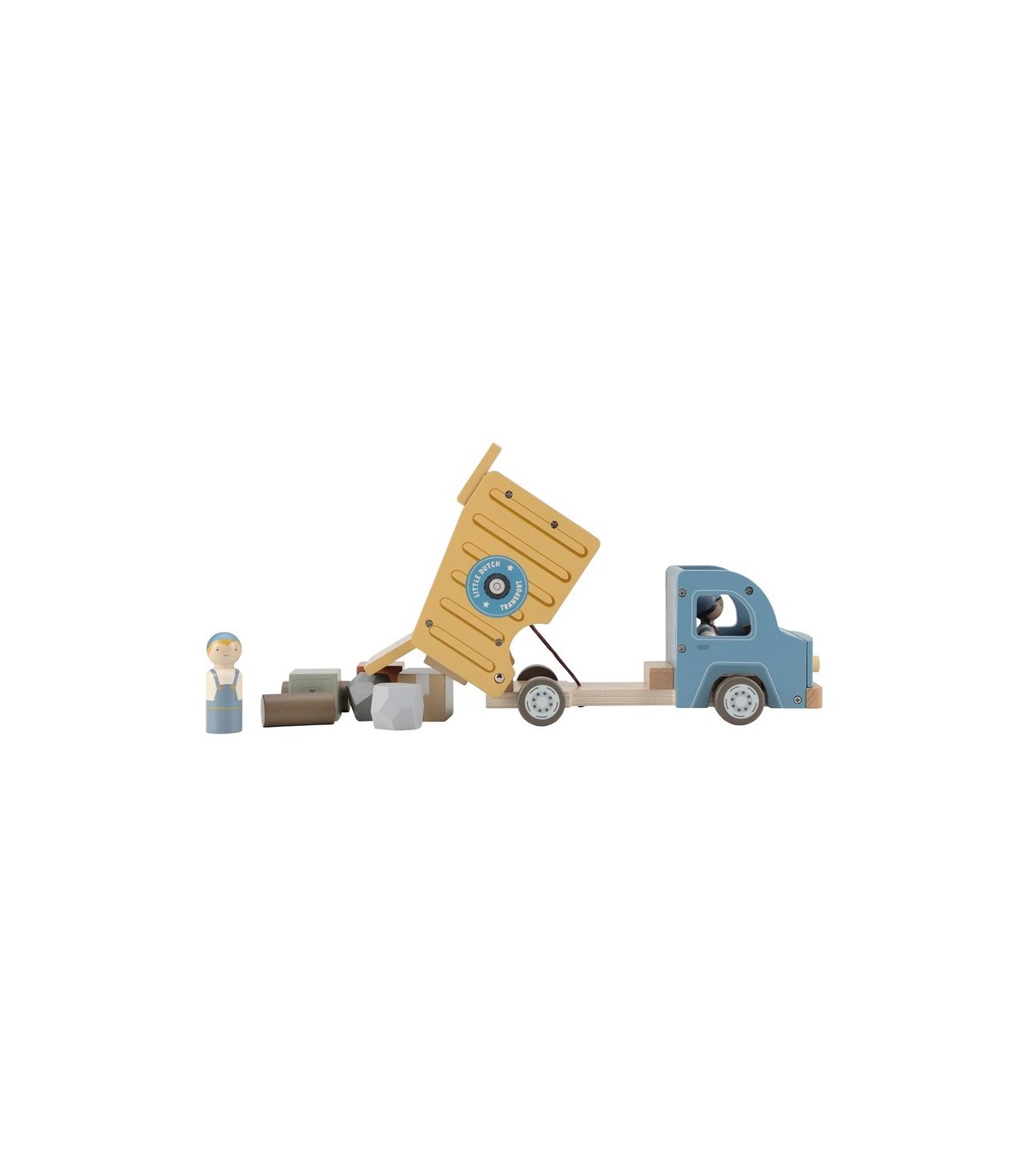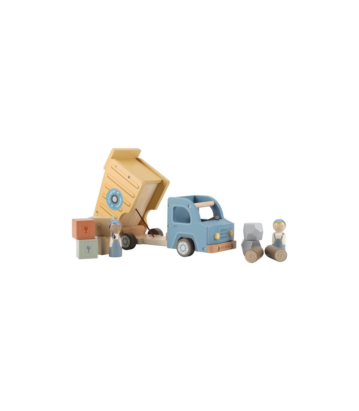 ¡Hora de descargar! Este camión dúmper de madera tiene una plataforma basculante funcional y viene con dos conductores. Incluye diversas cargas, como troncos, piedras y cajas de madera. Conduce hasta la obra, inclina la plataforma y descarga. Este camión de madera combina a la perfección con otros vehículos de construcción. ¿Estás construyendo una nueva ciudad hoy?
