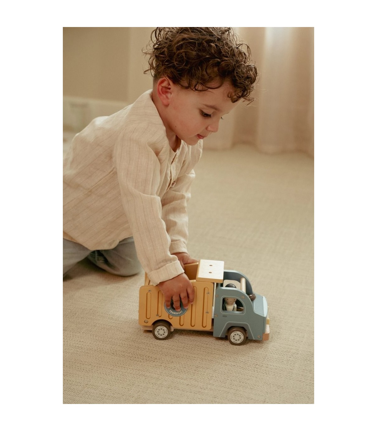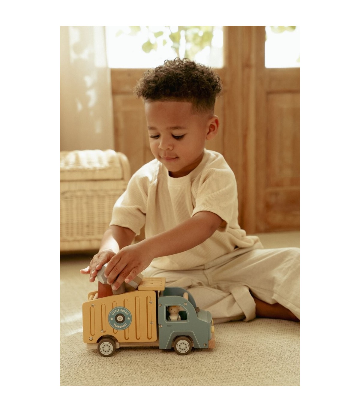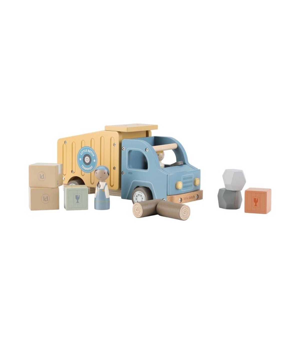 ¡Hora de descargar! Este camión dúmper de madera tiene una plataforma basculante funcional y viene con dos conductores. Incluye diversas cargas, como troncos, piedras y cajas de madera. Conduce hasta la obra, inclina la plataforma y descarga. Este camión de madera combina a la perfección con otros vehículos de construcción. ¿Estás construyendo una nueva ciudad hoy?
