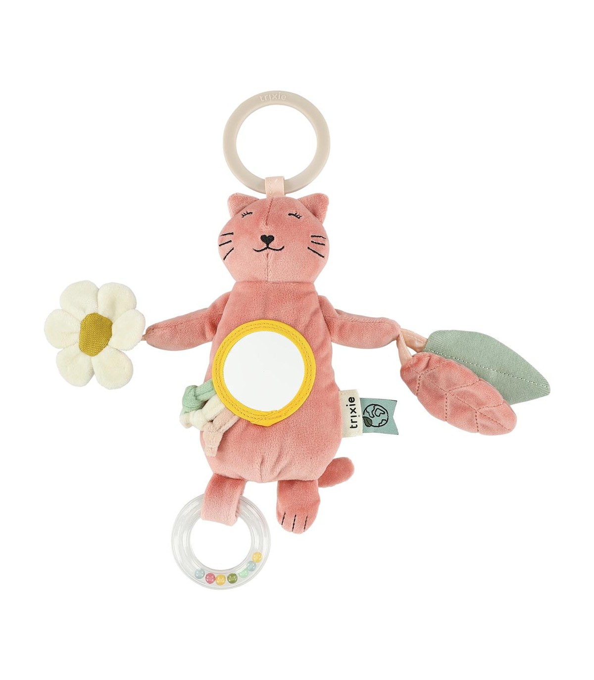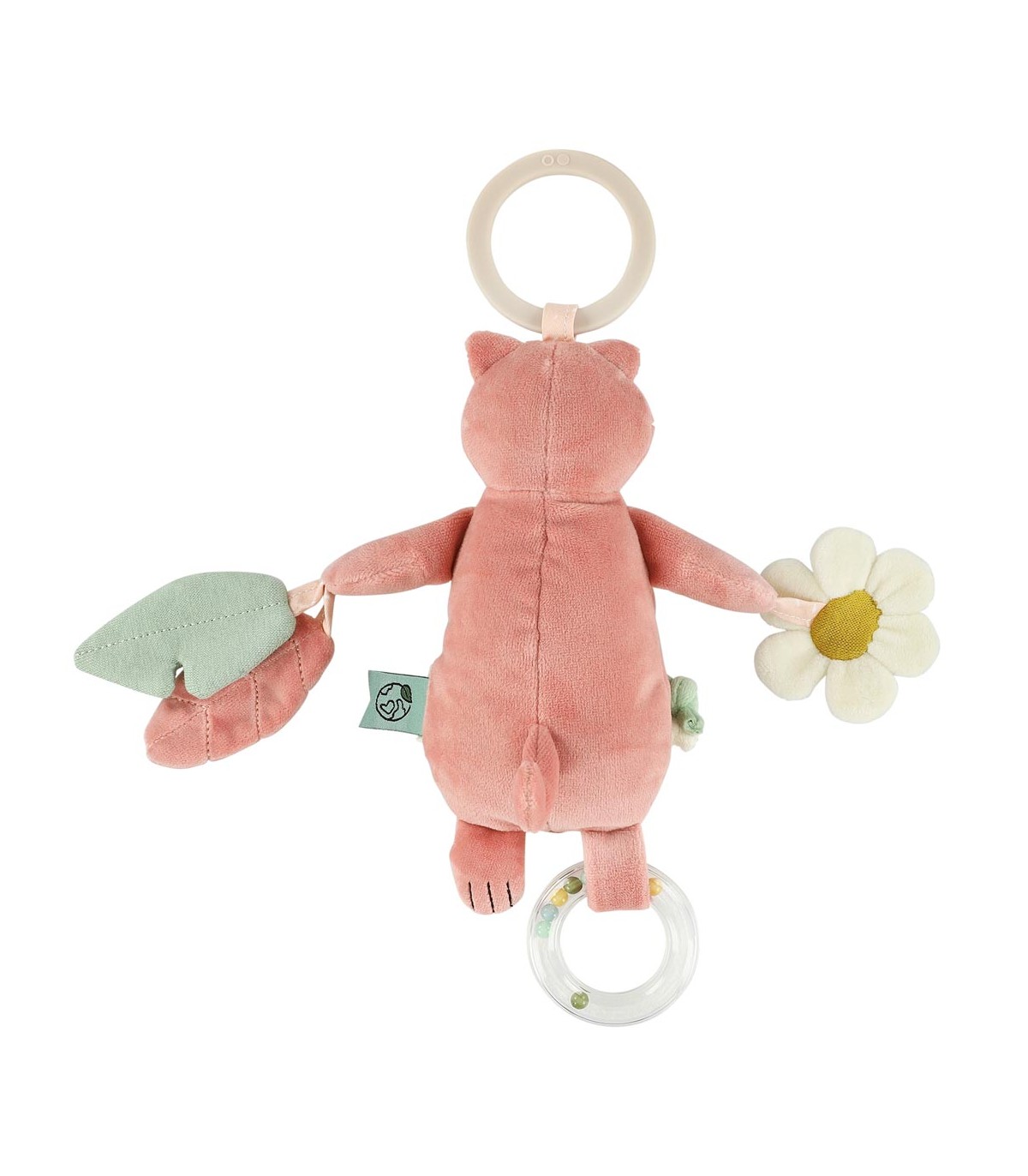Da igual adónde vayamos, ¡Mrs. Cat se apunta! Aporta mucha diversión, gracias a su sonajero de cuentas, al papel arrugado, al espejo de escondite y a las cuerdas para tirar. Todo ello mientras estimula a tu peque y perfecciona sus habilidades motoras, visuales y auditivas. Lo mejor de todo es que Mrs. Cat se puede enganchar con seguridad a cualquier cochecito, carrito de la compra, asiento de coche o parque infantil.