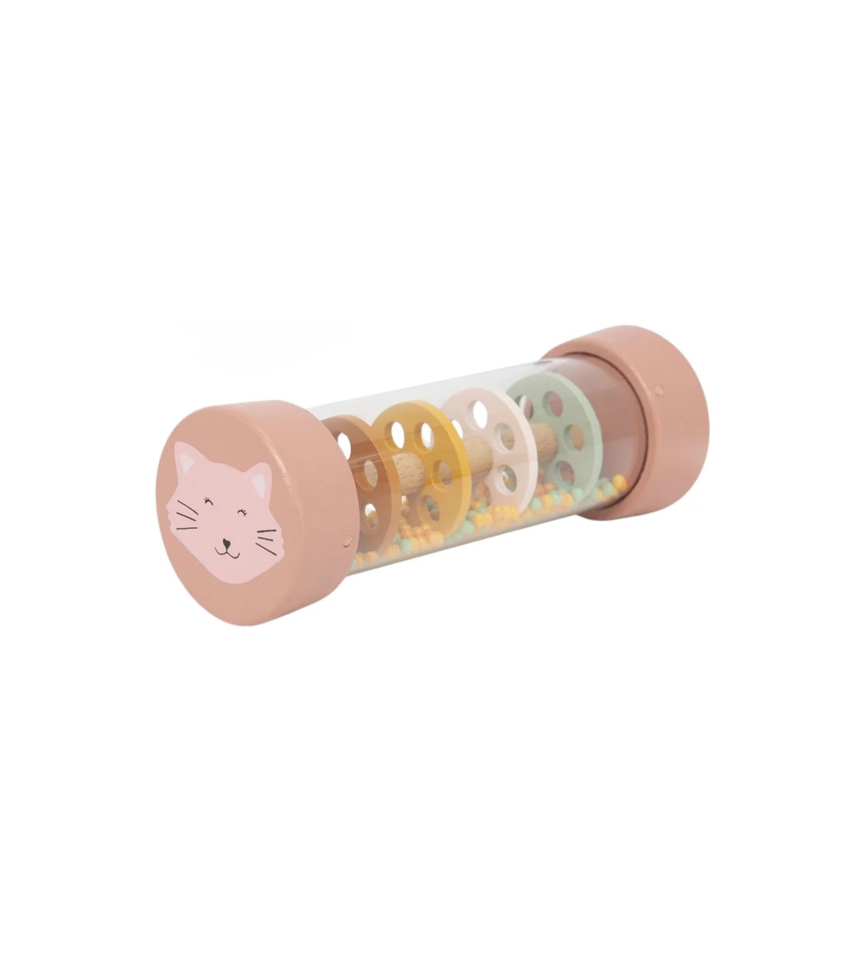 favorito viene con unas bonitas cuentas que giran y caen a través de unos discos de colores, creando un relajante sonido similar al de la lluvia y mucho movimiento para estimular sus sentidos. Hoy puede ser un sonajero, mañana un instrumento musical... Este juguete crecerá con tu pequeño. Fabricado con madera 100 % con certificación FSC® y pinturas no tóxicas y seguras para los más pequeños. ¿Acaso está lloviendo? ¡Oh! ¡Es el nuevo palo de lluvia para tu bebé! Su animal favorito viene con unas bonitas cuentas que giran y caen a través de unos discos de colores, creando un relajante sonido similar al de la lluvia y mucho movimiento para estimular sus sentidos. Hoy puede ser un sonajero, mañana un instrumento musical... Este juguete crecerá con tu pequeño. Fabricado con madera 100 % con certificación FSC® y pinturas no tóxicas y seguras para los más pequeños