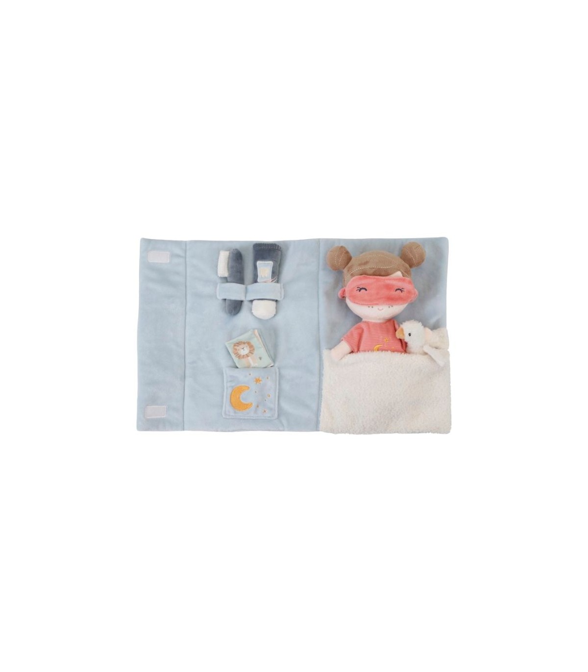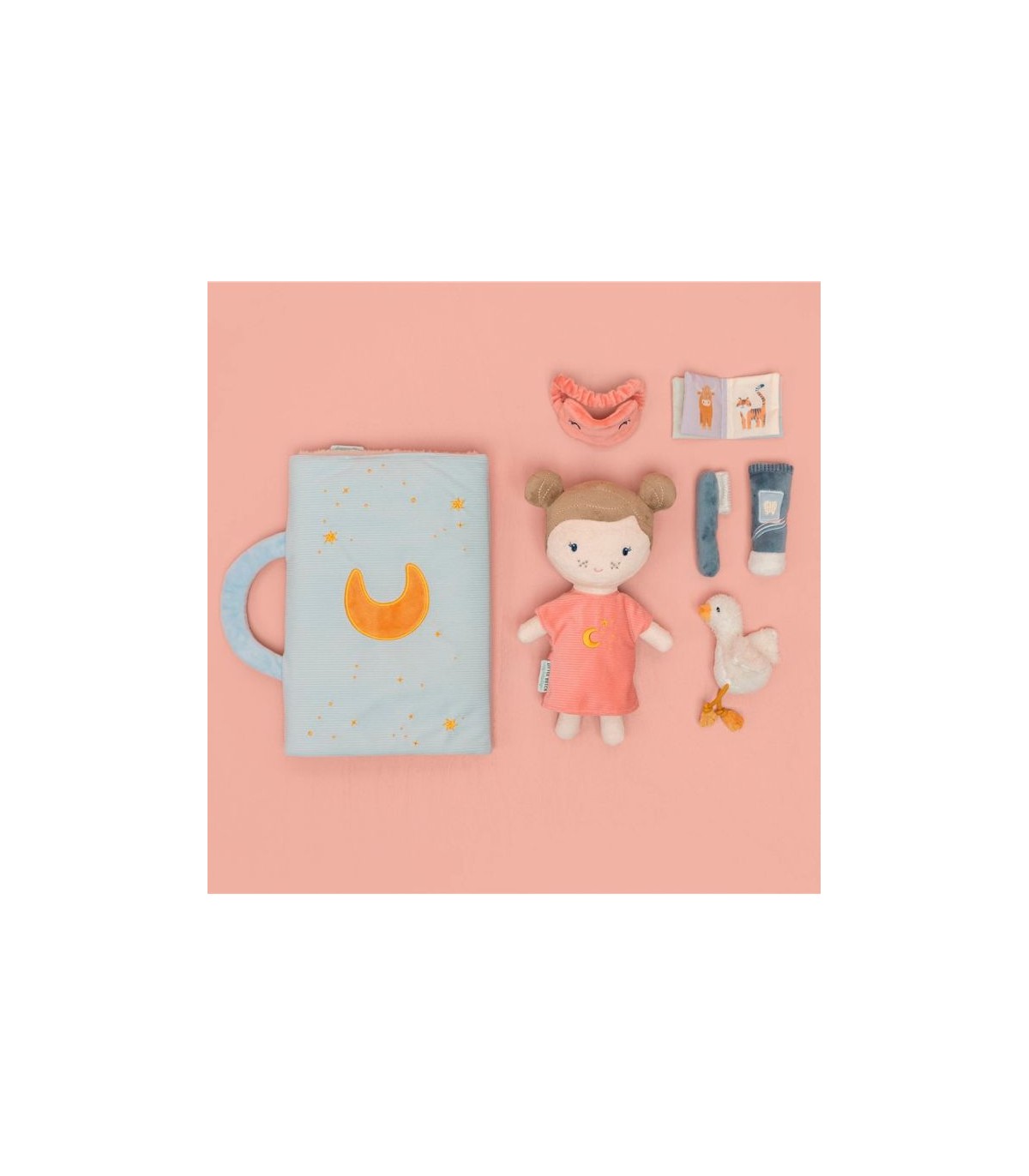 Maletín de tela, con todo lo necesario para que la muñeca Rosa tenga unos dulces sueños, de Little Dutch.