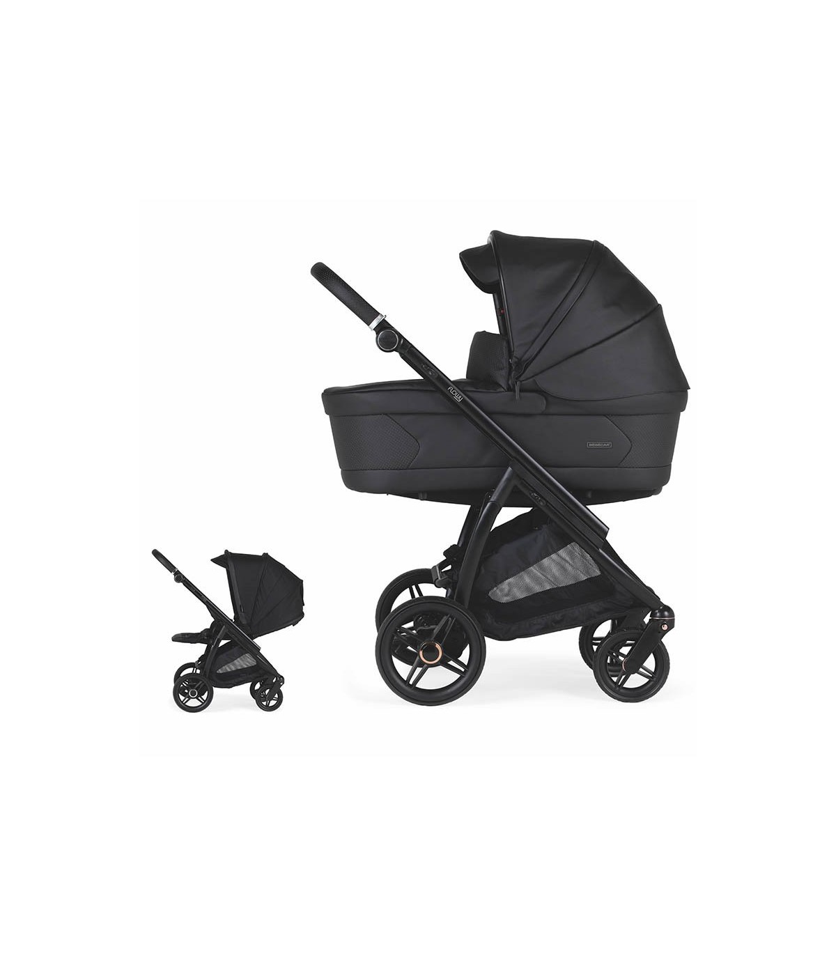 - Incluye: chasis, capazo con colchón y silla de paseo reversible.