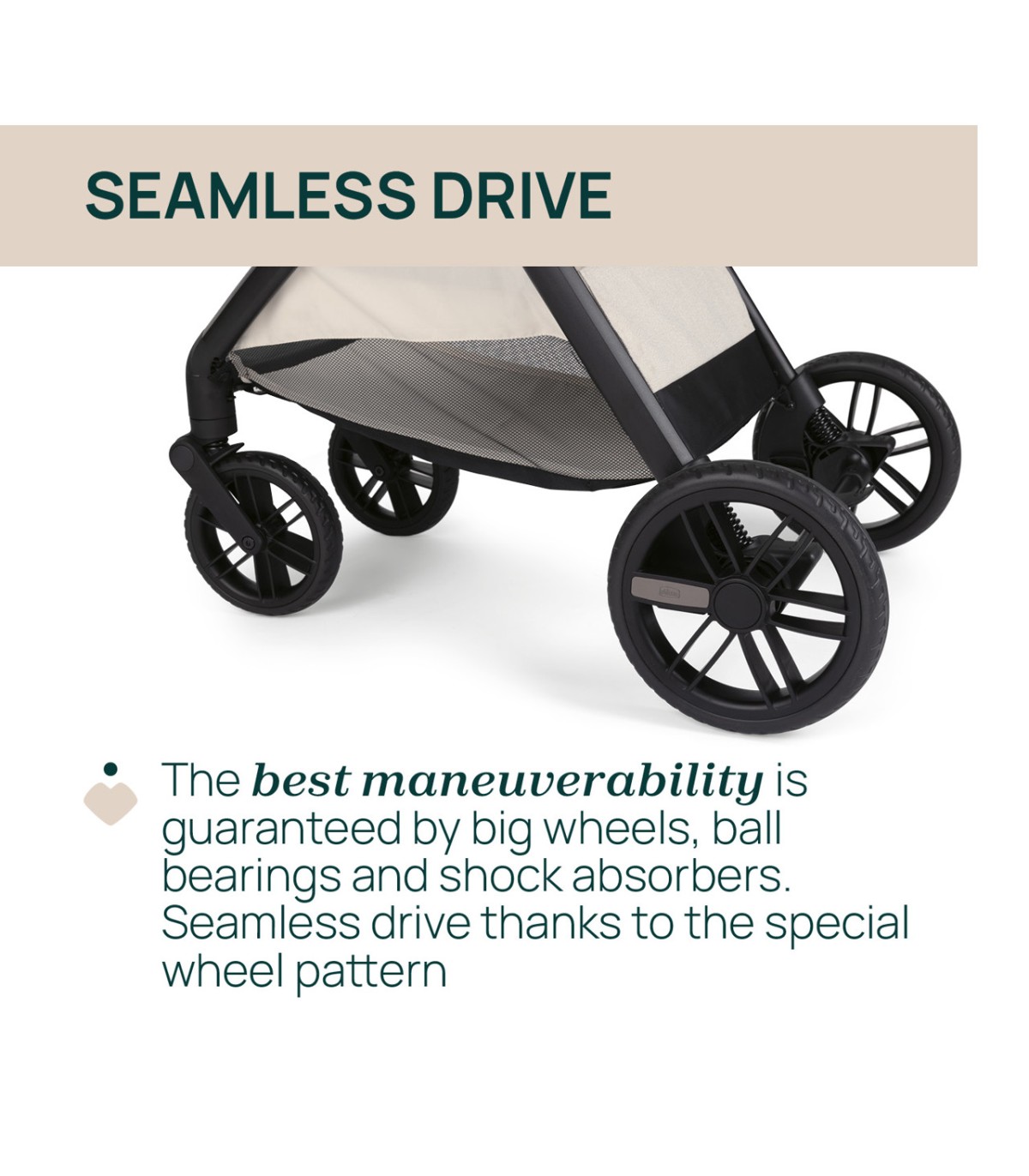 La capota del carrito tiene un gran tamaño, es extensible y cuenta con tratamientos UPV 50+ e impermeables. Tiene una ventana de malla para favorecer la ventilación del aire y mantener el contacto visual con el peque el todo momento.
