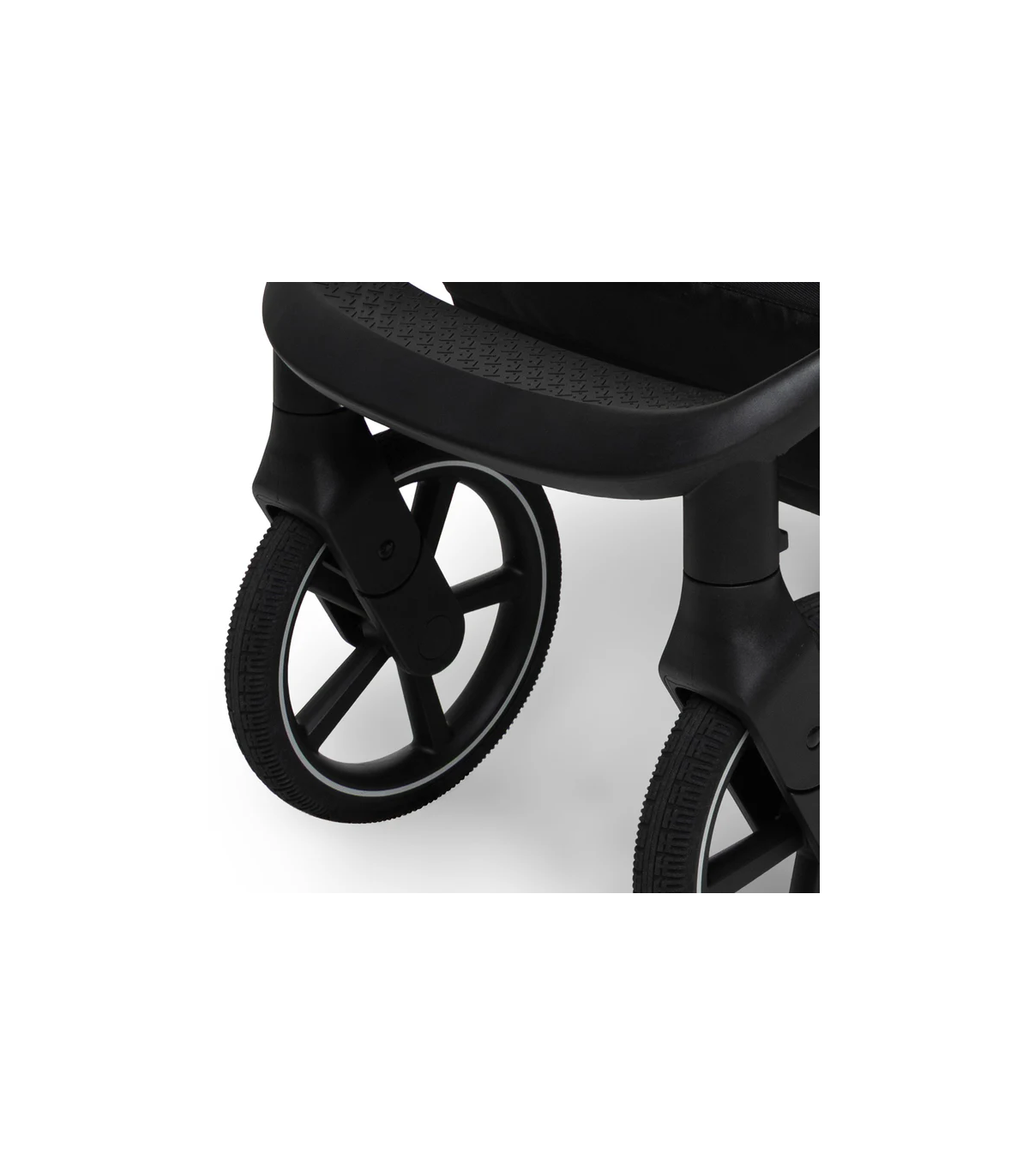 La suspensión independiente mejorada supera bordillos, superficies irregulares y caminos de bosque con suavidad. Tú empujas con facilidad, mientras tu pequeño viaja cómodo.