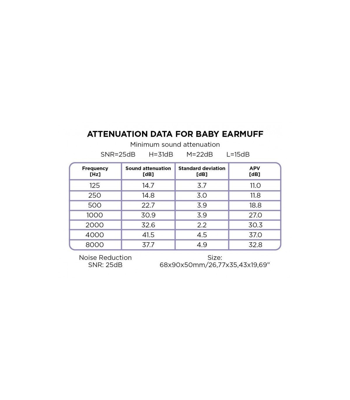 Con una construcción pensada para la comodidad y el crecimiento, estos auriculares cuentan con una banda suave y ajustable. El sistema de cierre con velcro facilita la personalización del ajuste, garantizando que se adapten perfectamente a la cabeza en crecimiento de tu bebé, sin ejercer presión innecesaria sobre las áreas sensibles. Las dimensiones de los auriculares son ideales para las pequeñas orejas, asegurando una cobertura completa y eficaz.