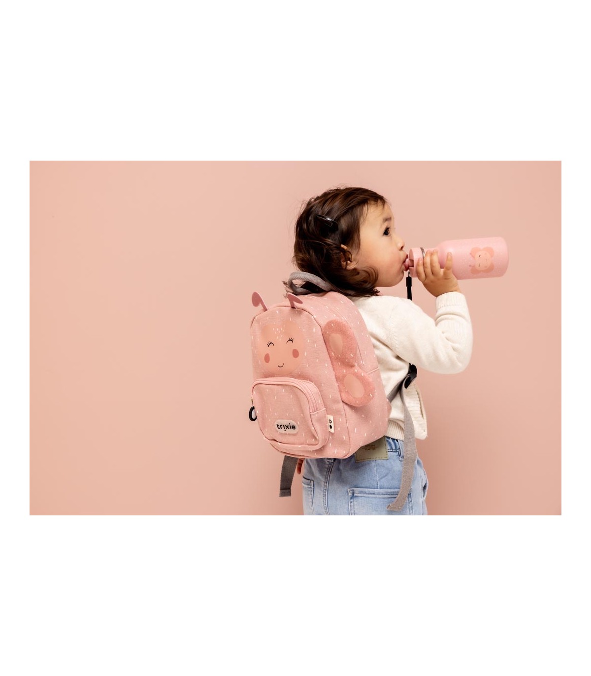 Estas botellas juguetonas son imprescindibles cuando sales con niños. ¡Con una selección de animales alegres diferentes, cada pequeño encontrará a su compañero favorito para salir! Nada más que beneficios La botella está hecha de acero inoxidable, por lo que es la alternativa perfecta y sostenible a las botellas de plástico desechables. El material es ligero, altamente resistente a cualquier impacto y no libera sustancias tóxicas en el agua. La botella es fácil de limpiar, debido a la simplicidad en el diseño. ¡Use un cepillo para botellas, agua tibia con detergente o simplemente ponga la botella en el lavavajillas! Las botellas son completamente a prueba de fugas. La tapa práctica está diseñada para que las manos pequeñas puedan abrirla y cerrarla fácilmente. Cada botella está equipada con una cuerda con la que puedes transportarla fácilmente o colgarla en una mochila. Cada animal está disponible en 2 tamaños. La botella pequeña tiene un volumen de 350ml, la grande de 500 ml. Ambas botellas tienen un diseño fino para que se adapte bien a las manos de los niños pequeños y se pueda guardar fácilmente en la mochila o en la mochila escolar. La botella viene con una tapa.