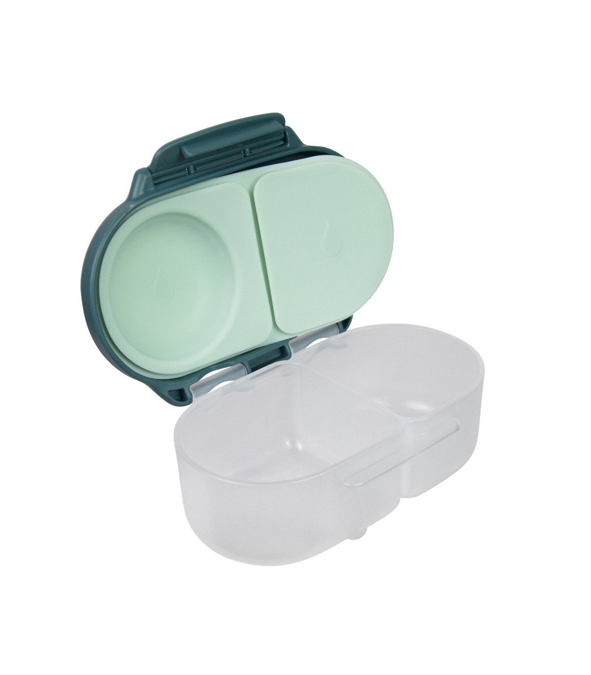 Con la cajita snack de B.Box, la hora de la merienda es mucho más fácil. La opción perfecta para raciones más pequeñas, para el colegio, el parque, una excursión, una tarde de compras, etc. El compartimento flexible para fruta permite transportar la fruta enteras, sin necesidad de cortarla. Los dos compartimentos cuentan con la protección a prueba de fugas de la almohadilla de silicona, por lo que se pueden transportar snacks húmedos, como puré, yogures, raciones de comida con salsa, con total tranquilidad. El clip de fácil apertura y cierre es lo suficientemente grande para las manos y los dedos de los más pequeños y la almohadilla flexible es extraíbles para una limpieza fácil e higiénica. Fabricado en PP y silicona.