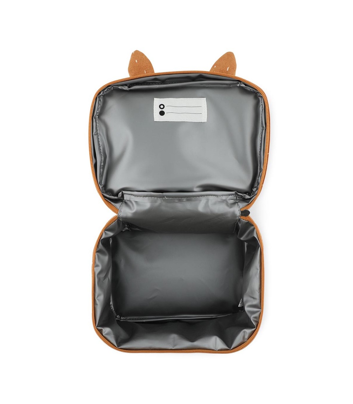 A partir de ahora, llévese tu almuerzo favorito en esta práctica bolsa de almuerzo. Esta bolsa es térmica para que el almuerzo se mantenga caliente o frío. La bolsa también está recubierta en el exterior y, por lo tanto, es impermeable. Las orejas de soplillo dan un efecto lúdico y el asa hace que la bolsa de almuerzo sea portátil y compacta. La bolsa tiene una cremallera grande para abrir y cerrar fácilmente. También hay una etiqueta con el nombre en el interior para que siempre puedas encontrar a tu compañero de almuerzo y un bolsillo separado en la parte posterior para una galleta que no necesita estar fría o caliente. Una botella de Trixie y una fiambrera encajan perfectamente en esta divertida bolsa de almuerzo.