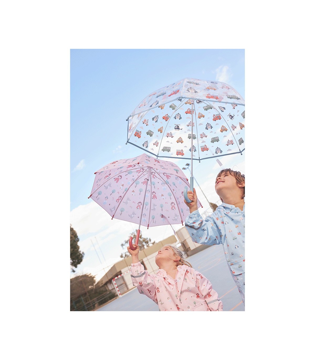 Con este divertido paraguas infantil los días de lluvia se convierten en una nueva oportunidad para imaginar historias y caminar bien protegidos. Diseñado para los peques, este paraguas opaco ofrece cobertura total y está decorado con los entrañables estampados de la colección “Vuelta al Cole 2025” de Tutete.