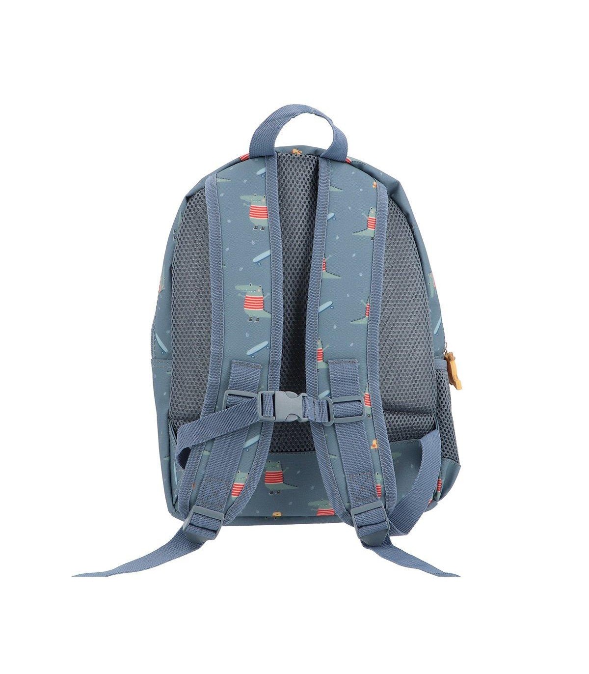 - Un bolsillo frontal, que ocupa casi la altura de la mochila, con múltiples separadores interiores donde guardar lápices,cubiertos y pequeños artículos, que los peques tendrán más accesible
