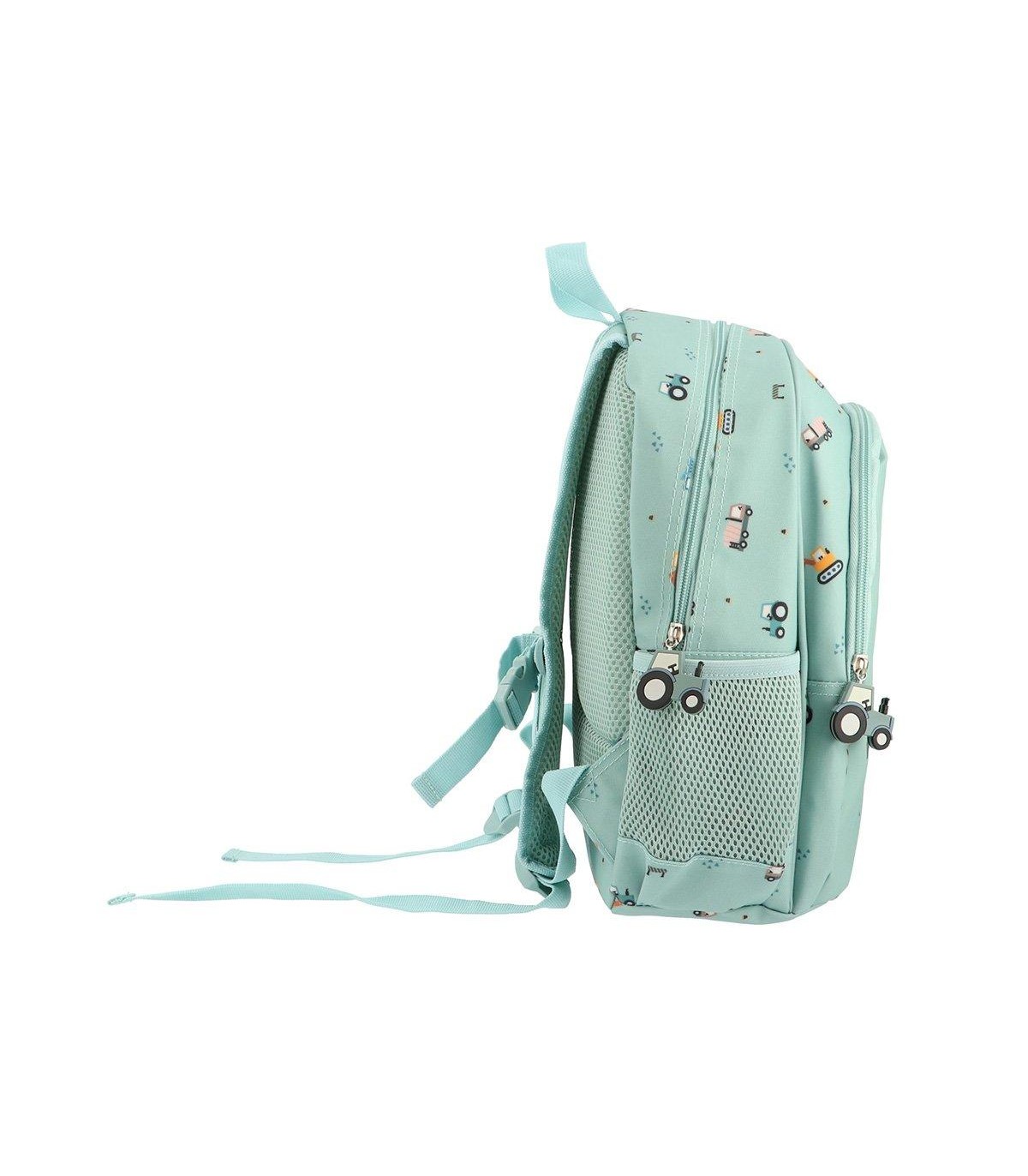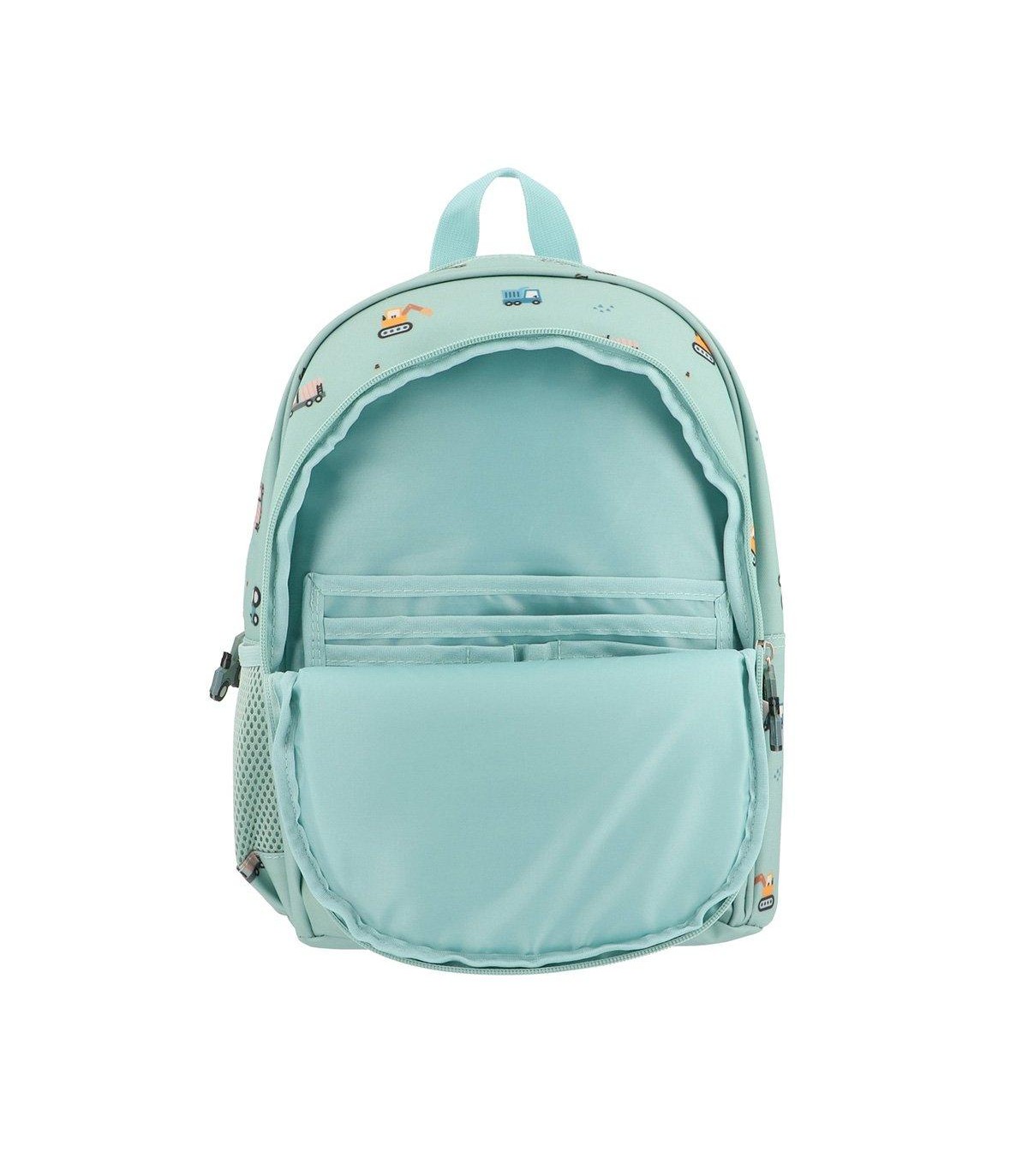 - Un bolsillo frontal, que ocupa casi la altura de la mochila, con múltiples separadores interiores donde guardar lápices,cubiertos y pequeños artículos, que los peques tendrán más accesible